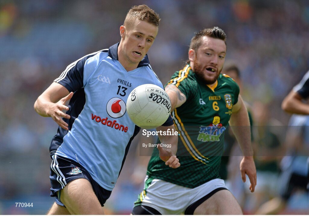 14 July 2013; Paul Manninon, Dublin, in action against Mickey Burke, Meath. Leinster GAA Football Senior Championship Final, Meath v Dublin, Croke Park, Dublin. Picture credit: Barry Cregg / SPORTSFILE