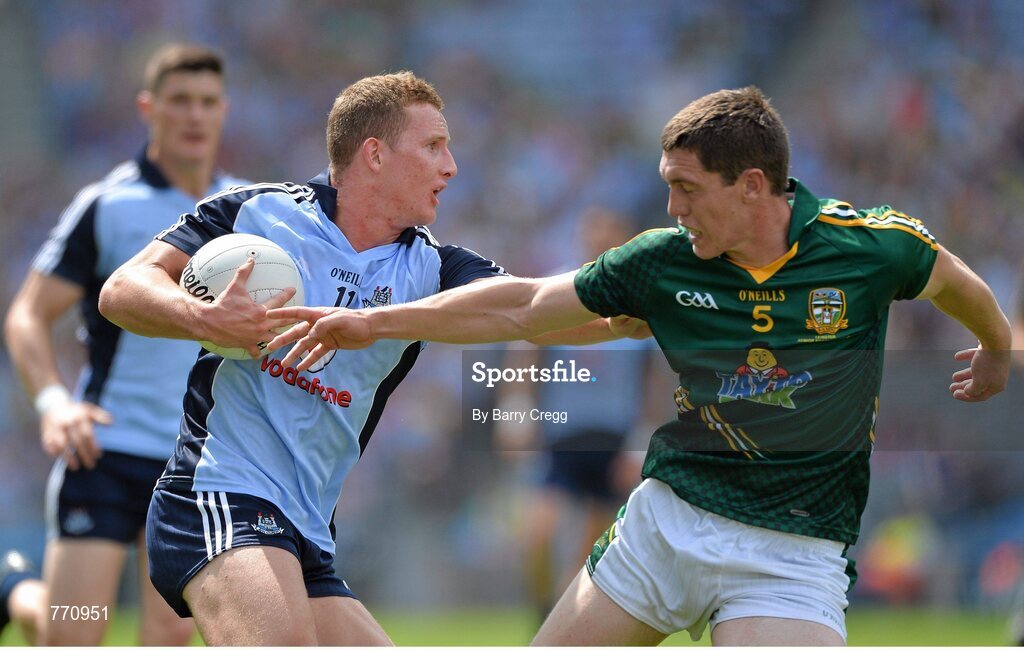14 July 2013; Ciarán Kilkenny, Dublin, in action against Padraic Harnan, Meath. Leinster GAA Football Senior Championship Final, Meath v Dublin, Croke Park, Dublin. Picture credit: Barry Cregg / SPORTSFILE