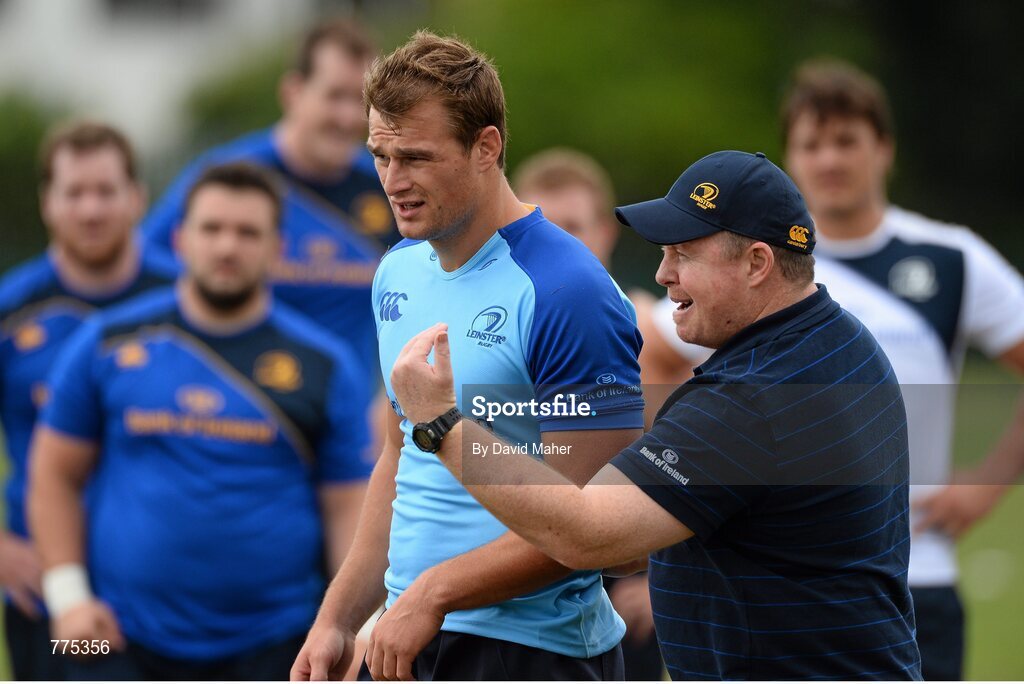23 July 2013; Leinster head coach Matt O'Connor with Rhys Ruddock during pre-season squad training. Thornfields, UCD, Belfield, Dublin. Picture credit: David Maher / SPORTSFILE