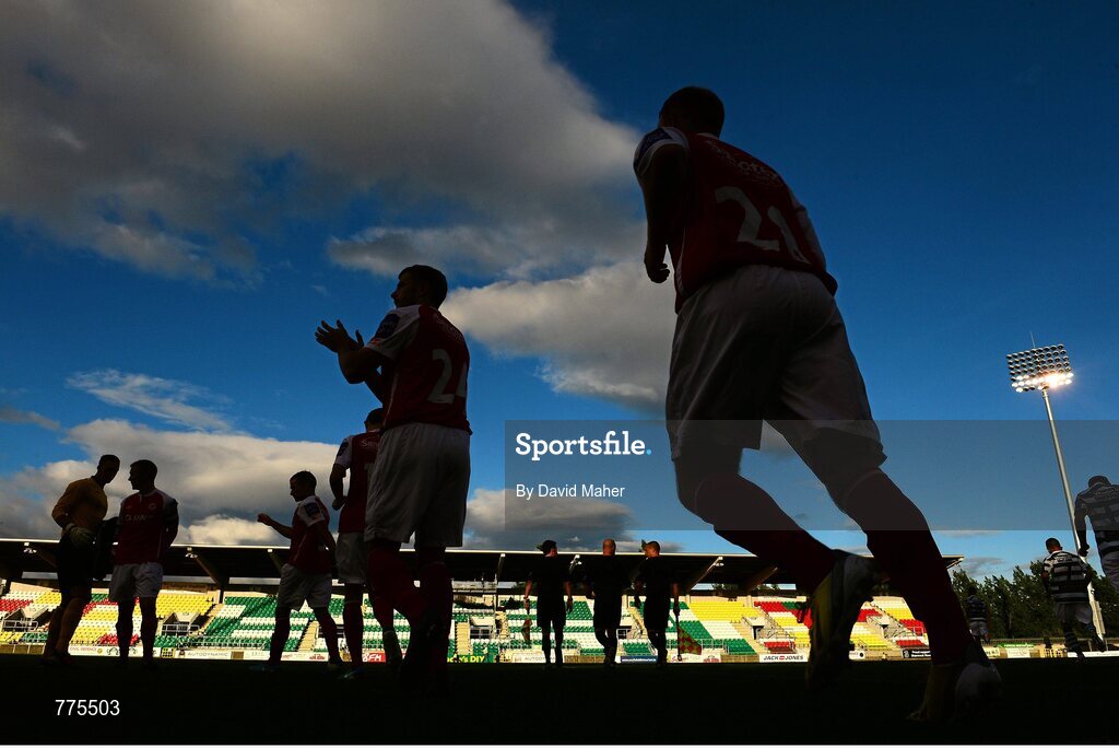 23 July 2013; Shamrock Rovers and St. Patrick's Athletic players walk out for the start of the game. EA Sports Quarter-Final, Shamrock Rovers v St. Patrick's Athletic, Tallaght Stadium, Tallaght, Dublin. Picture credit: David Maher / SPORTSFILE