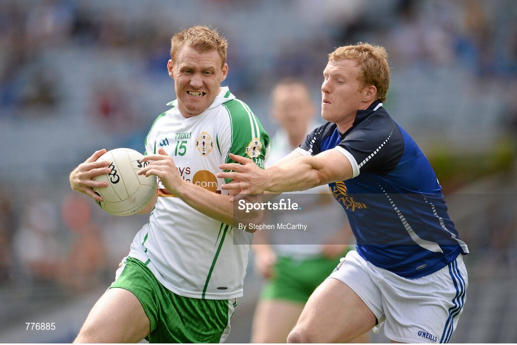 27 July 2013; Cathal Magee, London, in action against James McEnroe, Cavan. GAA Football All-Ireland Senior Championship, Round 4, London v Cavan, Croke Park, Dublin. Picture credit: Stephen McCarthy / SPORTSFILE
