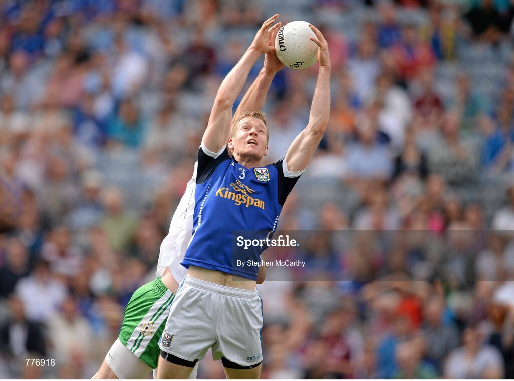 27 July 2013; Paul Geraghty, London, scores his side's first goal despitethe efforts of Cavan's Rory Dunne. GAA Football All-Ireland Senior Championship, Round 4, London v Cavan, Croke Park, Dublin. Picture credit: Stephen McCarthy / SPORTSFILE