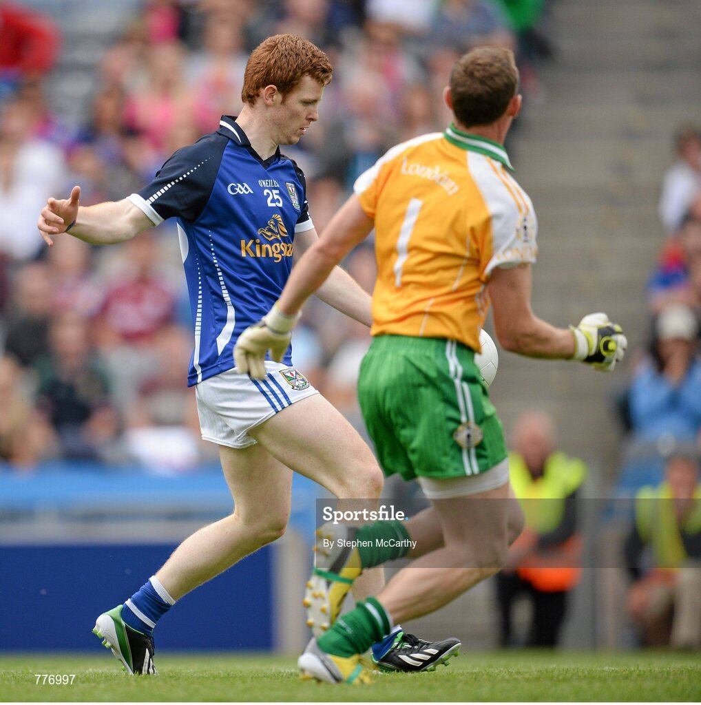 27 July 2013; Niall McDermott, Cavan, shoots to score his side's goal past London goalkeeper Declan Traynor. GAA Football All-Ireland Senior Championship, Round 4, London v Cavan, Croke Park, Dublin. Picture credit: Stephen McCarthy / SPORTSFILE
