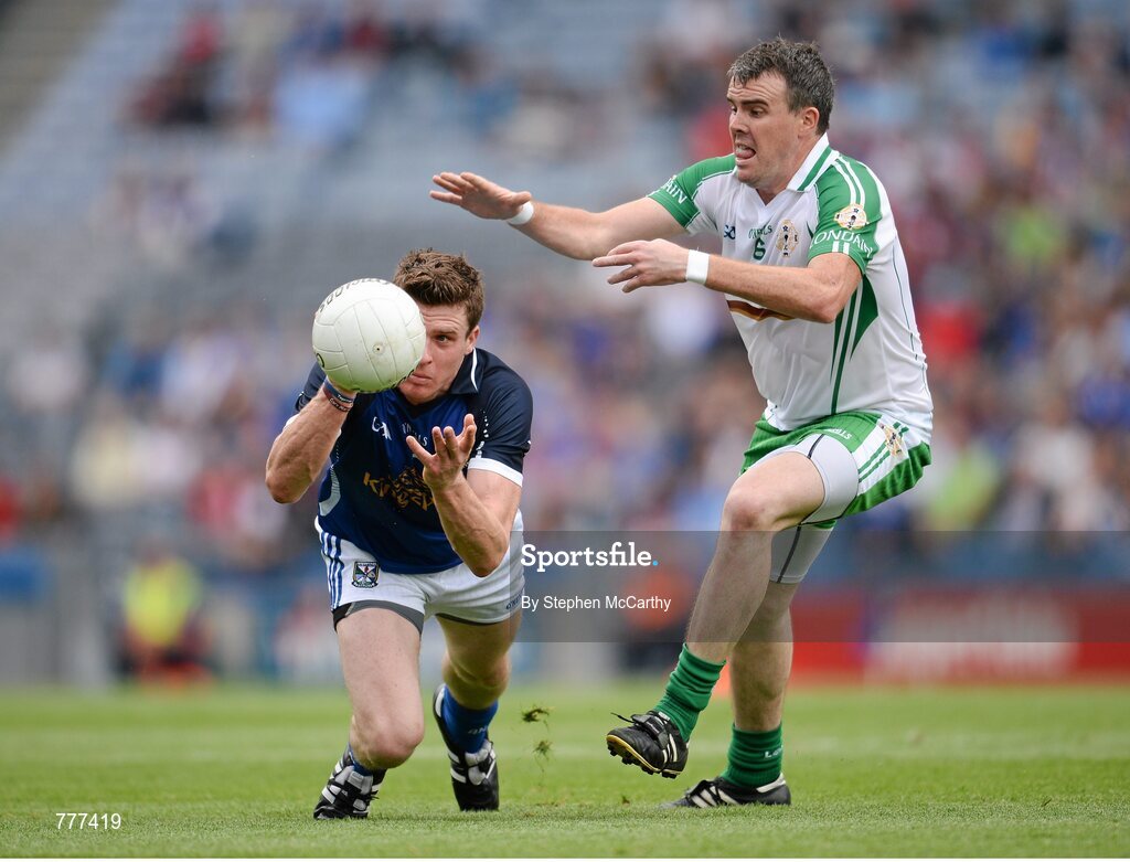 27 July 2013; Tomas Corr, Cavan, in action against Shane Mulligan, London. GAA Football All-Ireland Senior Championship, Round 4, London v Cavan, Croke Park, Dublin. Picture credit: Stephen McCarthy / SPORTSFILE