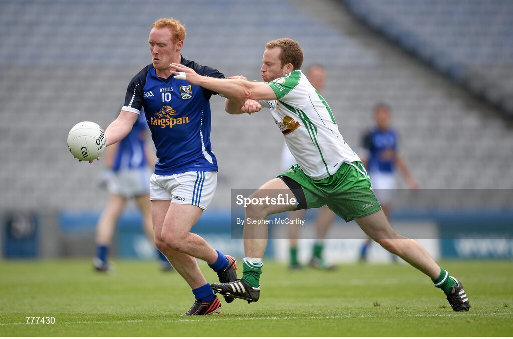 27 July 2013; Cian Mackey, Cavan, in action against Brian Collins, London. GAA Football All-Ireland Senior Championship, Round 4, London v Cavan, Croke Park, Dublin. Picture credit: Stephen McCarthy / SPORTSFILE
