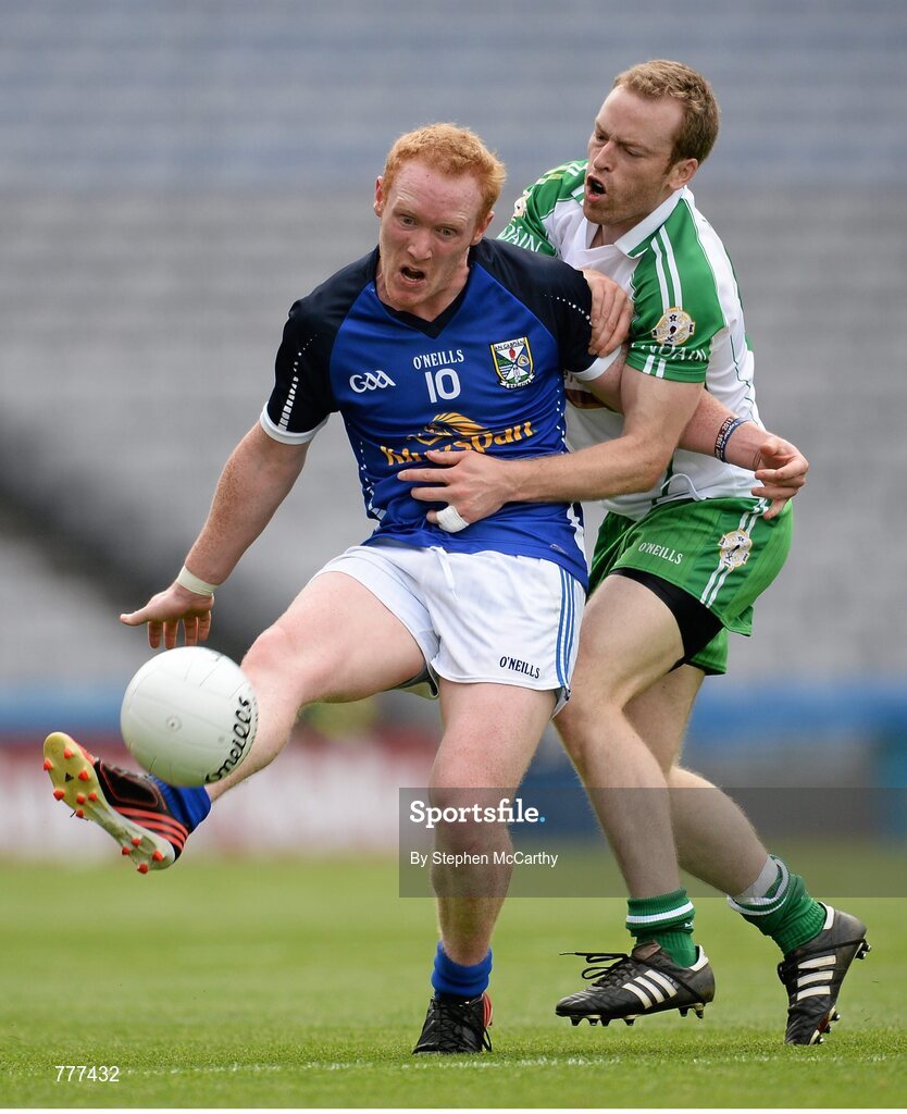 27 July 2013; Cian Mackey, Cavan, in action against Brian Collins, London. GAA Football All-Ireland Senior Championship, Round 4, London v Cavan, Croke Park, Dublin. Picture credit: Stephen McCarthy / SPORTSFILE