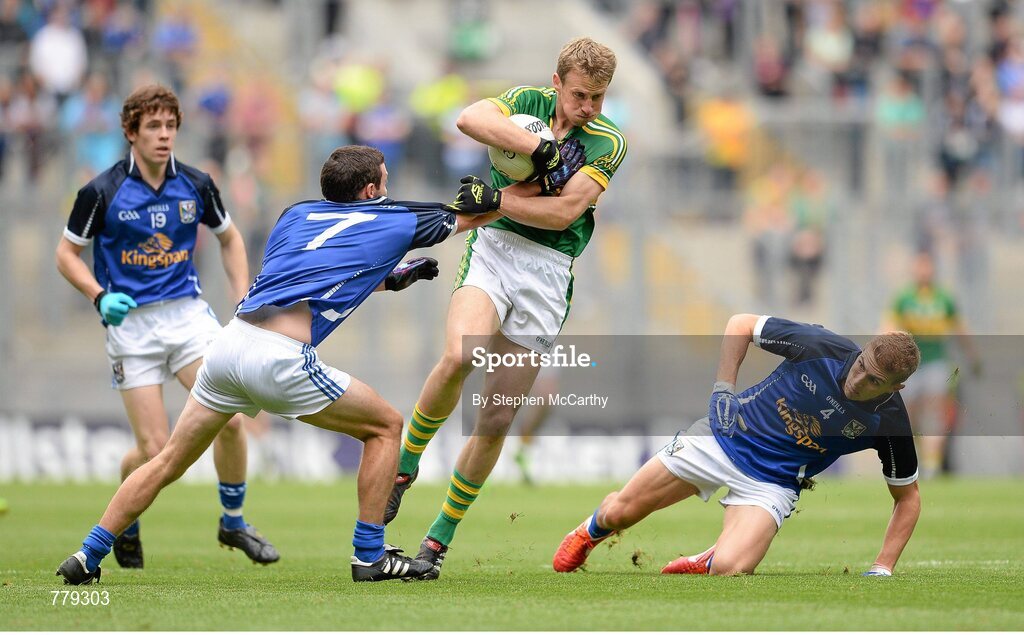 4 August 2013; Donnchadh Walsh, Kerry, in action against Ronan Flanagan, left, and Killian Clarke, right, Cavan. GAA Football All-Ireland Senior Championship, Quarter-Final, Kerry v Cavan, Croke Park, Dublin. Picture credit: Stephen McCarthy / SPORTSFILE