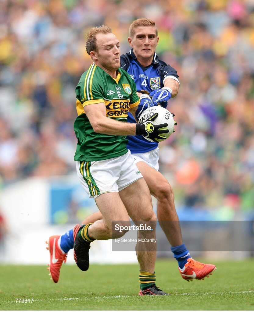 4 August 2013; Darran O'Sullivan, Kerry, in action against Killian Clarke, Cavan. GAA Football All-Ireland Senior Championship, Quarter-Final, Kerry v Cavan, Croke Park, Dublin. Picture credit: Stephen McCarthy / SPORTSFILE