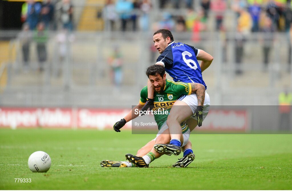 4 August 2013; Paul Galvin, Kerry, in action against Alan Clarke, Cavan. GAA Football All-Ireland Senior Championship, Quarter-Final, Kerry v Cavan, Croke Park, Dublin. Photo by Sportsfile