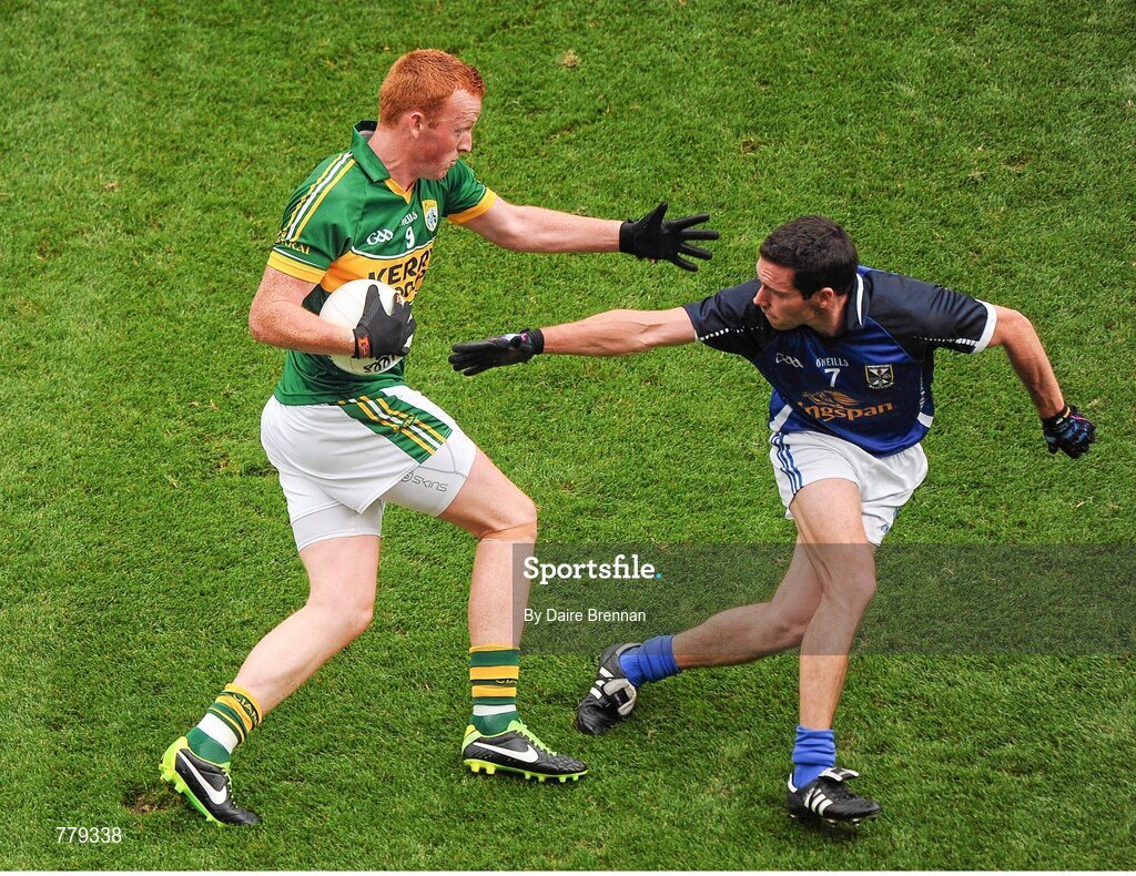 4 August 2013; Johnny Buckley, Kerry, in action against Ronan Flanagan, Cavan. GAA Football All-Ireland Senior Championship, Quarter-Final, Kerry v Cavan, Croke Park, Dublin. Picture credit: Dáire Brennan / SPORTSFILE