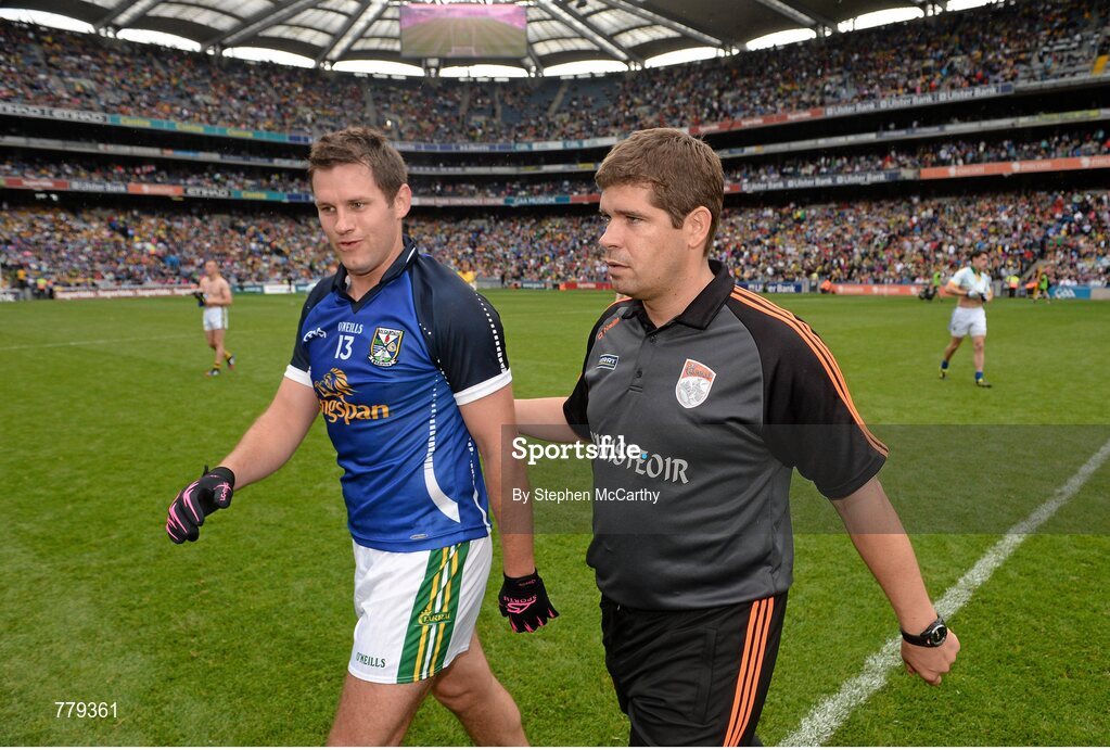 4 August 2013; Kerry manager Eamonn Fitzmaurice and Eoin Brosnan following their side's victory. GAA Football All-Ireland Senior Championship, Quarter-Final, Kerry v Cavan, Croke Park, Dublin. Picture credit: Stephen McCarthy / SPORTSFILE