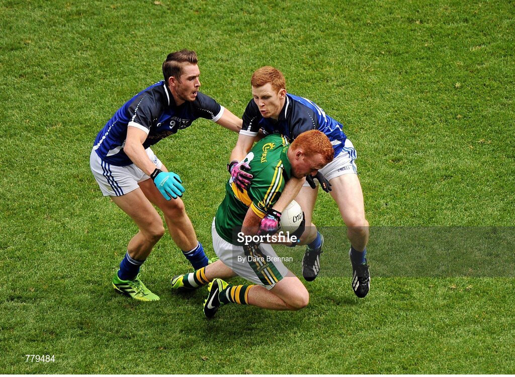 4 August 2013; Johnny Buckley, Kerry, in action against David Givney, left, and Niall McDermott, Cavan. GAA Football All-Ireland Senior Championship, Quarter-Final, Kerry v Cavan, Croke Park, Dublin. Picture credit: Dáire Brennan / SPORTSFILE