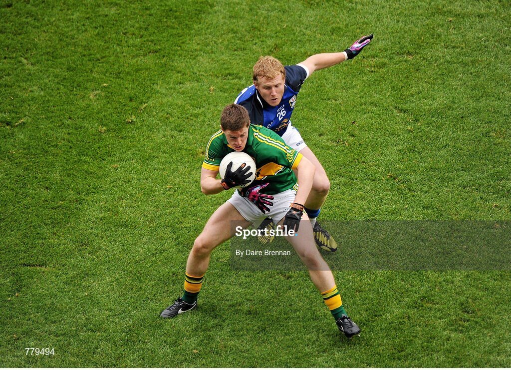 4 August 2013; Kieran O'Leary, Kerry, in action against James McEnroe, Cavan. GAA Football All-Ireland Senior Championship, Quarter-Final, Kerry v Cavan, Croke Park, Dublin. Picture credit: Dáire Brennan / SPORTSFILE