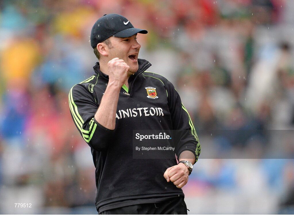 4 August 2013; Mayo manager James Horan celebrates a second half point. GAA Football All-Ireland Senior Championship, Quarter-Final, Mayo v Donegal, Croke Park, Dublin. Picture credit: Stephen McCarthy / SPORTSFILE