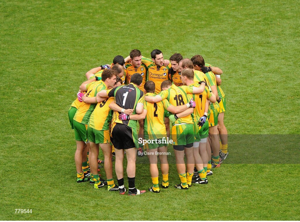 4 August 2013; The Donegal team huddle. GAA Football All-Ireland Senior Championship, Quarter-Final, Mayo v Donegal, Croke Park, Dublin. Picture credit: Dáire Brennan / SPORTSFILE