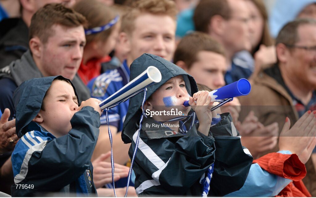 4 August 2013; Cavan supporters Conrad Cooney, 11 years, from Baileborough, and his brother Warren, 7 years, celebrate Cavan's second point. GAA Football All-Ireland Senior Championship, Quarter-Final, Kerry v Cavan, Croke Park, Dublin. Picture credit: Ray McManus / SPORTSFILE