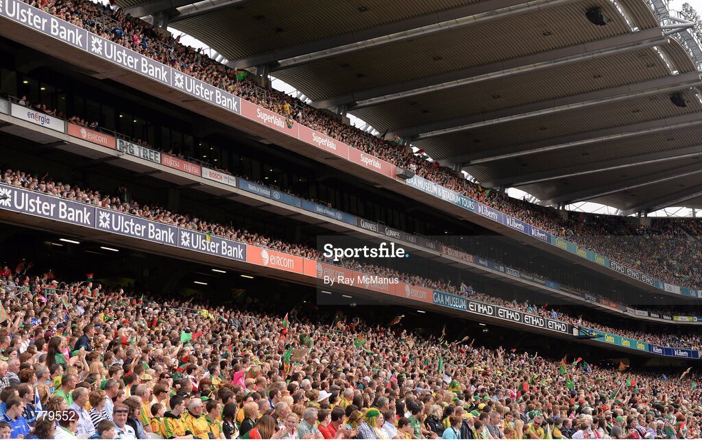 4 August 2013; A section, in the Cusack stand, of the 63,446 supporters who attended the three games. GAA Football All-Ireland Senior Championship, Quarter-Final, Mayo v Donegal, Croke Park, Dublin. Picture credit: Ray McManus / SPORTSFILE