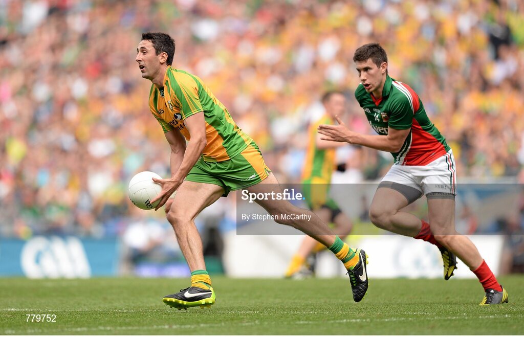 4 August 2013; Rory Kavanagh, Donegal, in action against Alan Freeman, Mayo. GAA Football All-Ireland Senior Championship, Quarter-Final, Mayo v Donegal, Croke Park, Dublin. Picture credit: Stephen McCarthy / SPORTSFILE