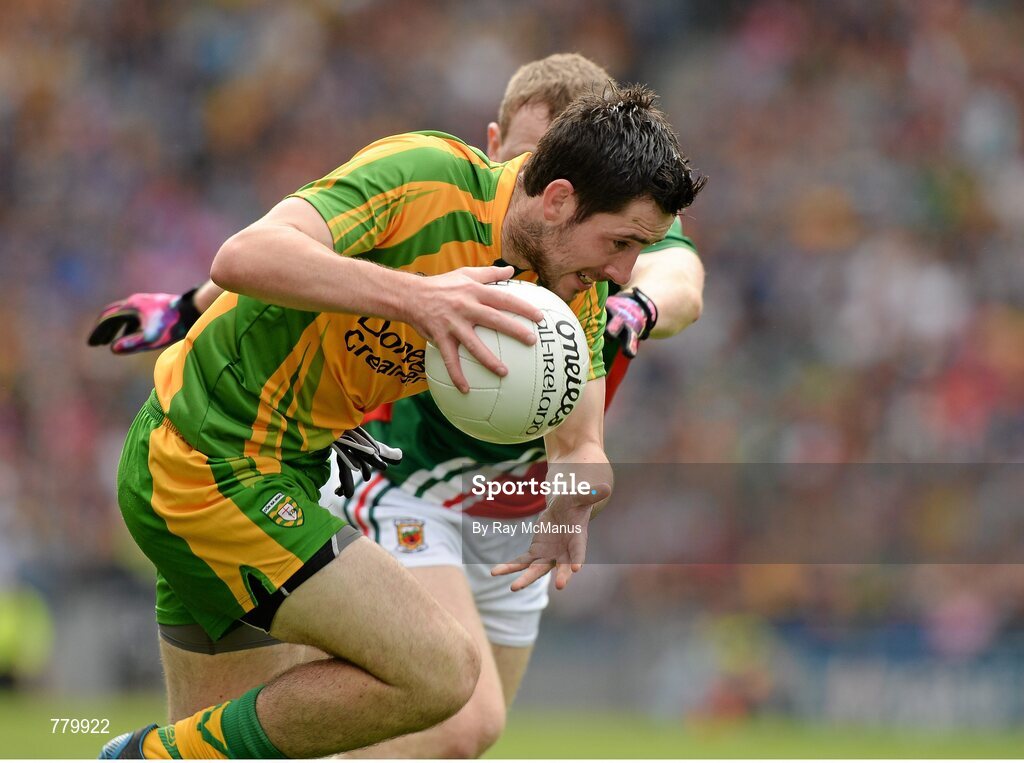 4 August 2013; Mark McHugh, Donegal, in action against Colm Boyle, Mayo. GAA Football All-Ireland Senior Championship, Quarter-Final, Mayo v Donegal, Croke Park, Dublin. Picture credit: Ray McManus / SPORTSFILE