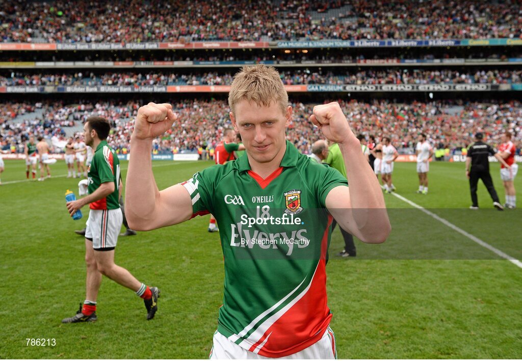 25 August 2013; Kevin Keane, Mayo, celebrate his side's victory. GAA Football All-Ireland Senior Championship Semi-Final, Mayo v Tyrone, Croke Park, Dublin. Picture credit: Stephen McCarthy / SPORTSFILE