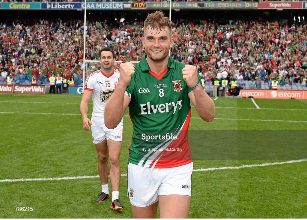 25 August 2013; Aidan O'Shea, Mayo, celebrate his side's victory. GAA Football All-Ireland Senior Championship Semi-Final, Mayo v Tyrone, Croke Park, Dublin. Picture credit: Stephen McCarthy / SPORTSFILE