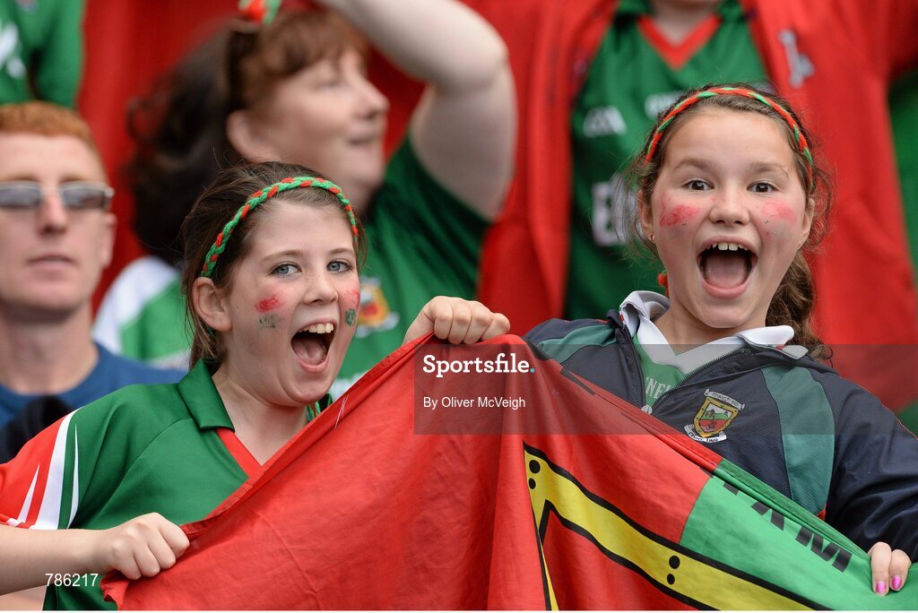 25 August 2013; Young Mayo fans celebrates at the end of the game. GAA Football All-Ireland Senior Championship Semi-Final, Mayo v Tyrone, Croke Park, Dublin. Picture credit: Oliver McVeigh / SPORTSFILE