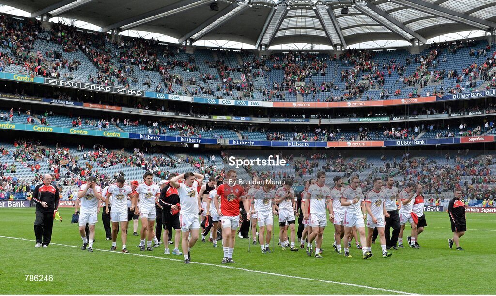 25 August 2013; The Tyrone squad leave the pitch after the game. GAA Football All-Ireland Senior Championship Semi-Final, Mayo v Tyrone, Croke Park, Dublin. Picture credit: Brendan Moran / SPORTSFILE