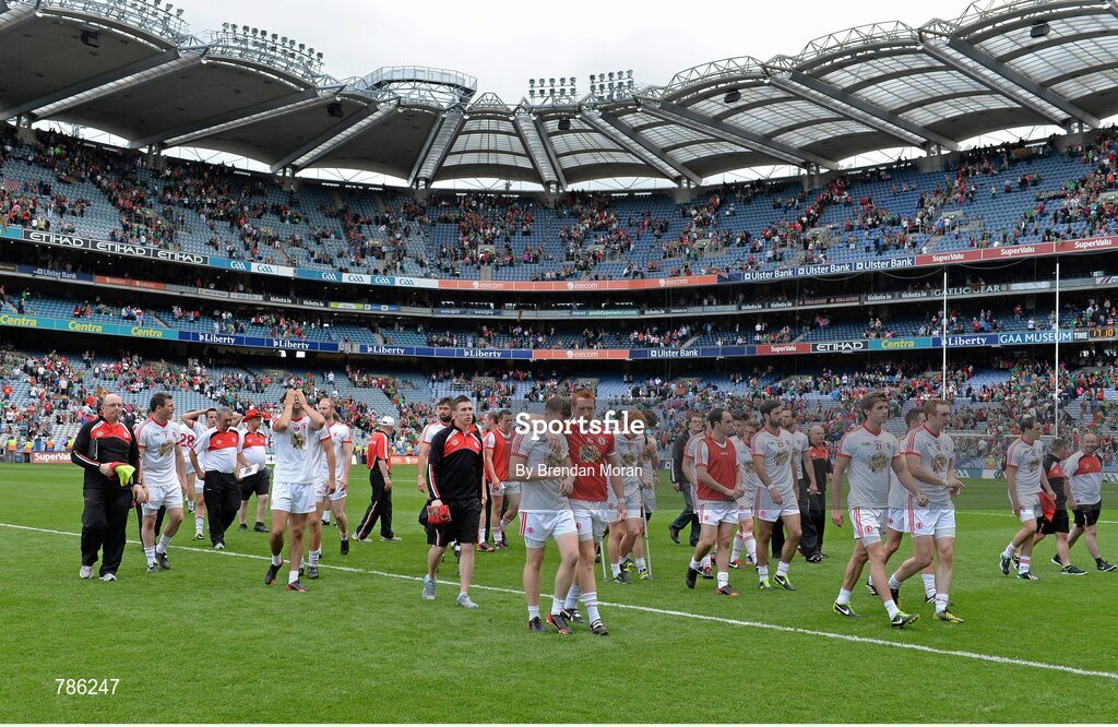 25 August 2013; The Tyrone squad and management leave the pitch after the game. GAA Football All-Ireland Senior Championship Semi-Final, Mayo v Tyrone, Croke Park, Dublin. Picture credit: Brendan Moran / SPORTSFILE