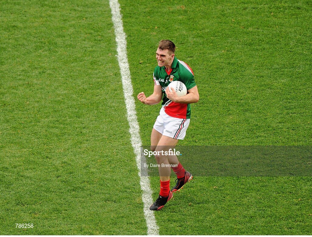 25 August 2013; SŽamus O'Shea, Mayo, celebrates at the final whistle. GAA Football All-Ireland Senior Championship Semi-Final, Mayo v Tyrone, Croke Park, Dublin. Picture credit: Dáire Brennan / SPORTSFILE