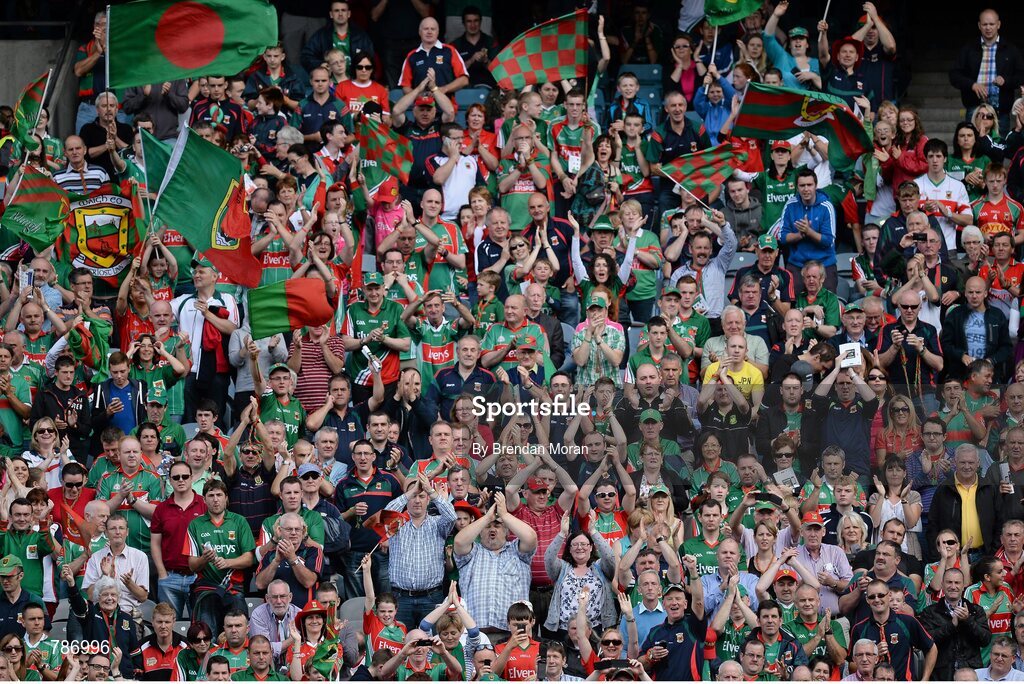 25 August 2013; Mayo supporters cheer on their side before the game. GAA Football All-Ireland Senior Championship Semi-Final, Mayo v Tyrone, Croke Park, Dublin. Picture credit: Brendan Moran / SPORTSFILE