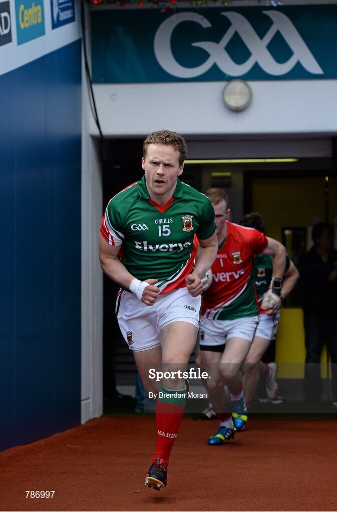 25 August 2013; Mayo captain Andy Moran leads his side out before the game. GAA Football All-Ireland Senior Championship Semi-Final, Mayo v Tyrone, Croke Park, Dublin. Picture credit: Brendan Moran / SPORTSFILE