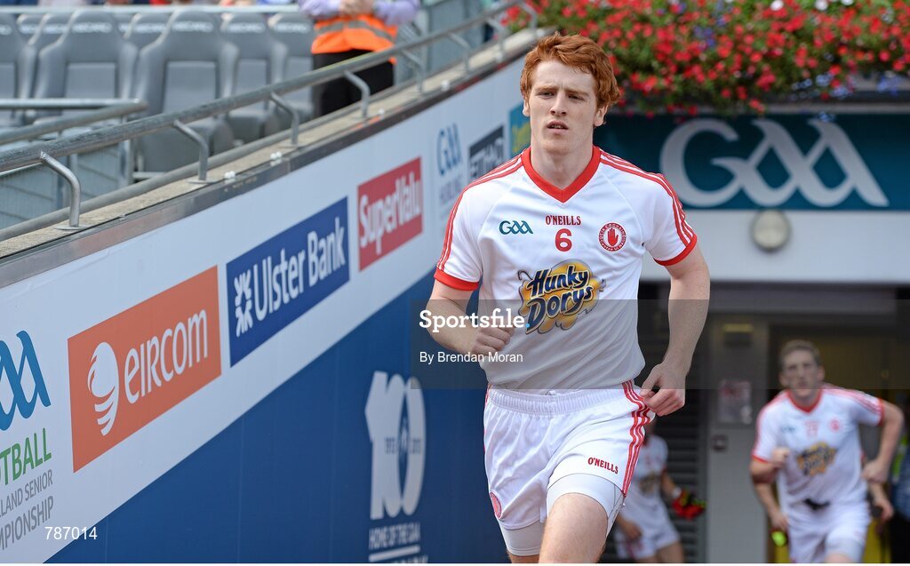 25 August 2013; Tyrone's Peter Harte runs onto the pitch before the game. GAA Football All-Ireland Senior Championship Semi-Final, Mayo v Tyrone, Croke Park, Dublin. Picture credit: Brendan Moran / SPORTSFILE