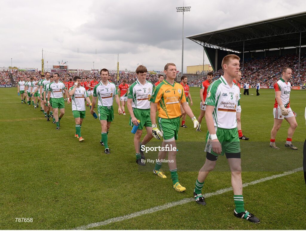 21 July 2013; The London team led by captain Séamus Hannon. Connacht GAA Football Senior Championship Final, Mayo v London, Elverys MacHale Park, Castlebar, Co. Mayo. Picture credit: Ray McManus / SPORTSFILE Picture credit: Ray McManus / SPORTSFILE