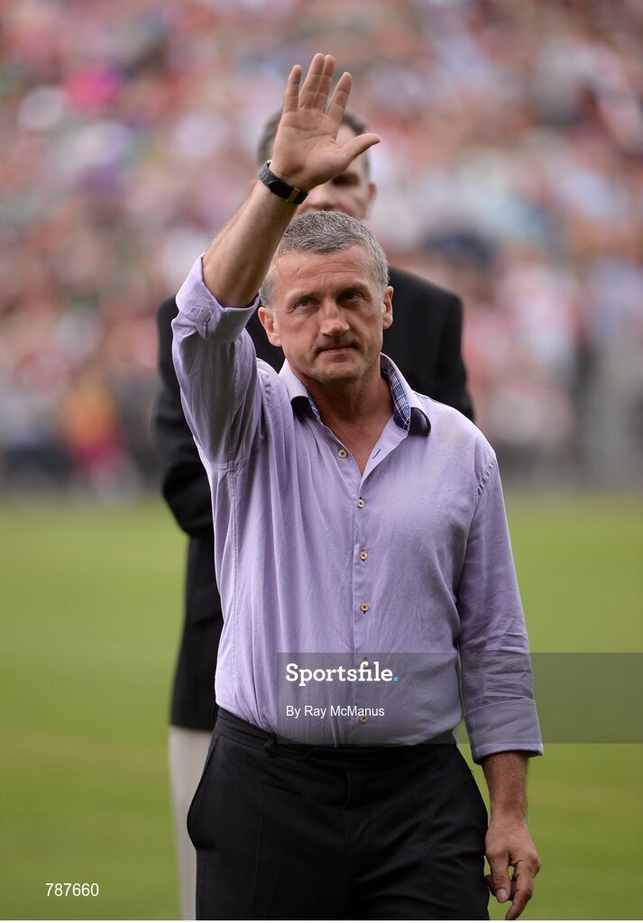 21 July 2013; Former Mayo star Tomás O'Grady who was honoured when the Mayo Teams of 1988 & 1989 introduced to the Crowd during half time at the Connacht GAA Football Senior Championship Final. Elverys MacHale Park, Castlebar, Co. Mayo. Picture credit: Ray McManus / SPORTSFILE