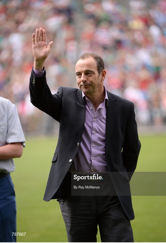 21 July 2013; Former Mayo star Mark Butler who was honoured when the Mayo Teams of 1988 & 1989 introduced to the Crowd during half time at the Connacht GAA Football Senior Championship Final. Elverys MacHale Park, Castlebar, Co. Mayo. Picture credit: Ray McManus / SPORTSFILE