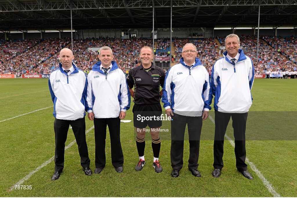 21 July 2013; Referee Conor Lane and his umpires. Connacht GAA Football Senior Championship Final, Mayo v London, Elverys MacHale Park, Castlebar, Co. Mayo. Picture credit: Ray McManus / SPORTSFILE