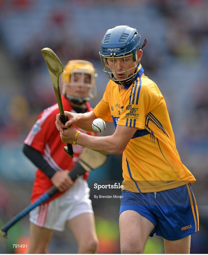 8 September 2013; Nathan Earner, from St. Brendan's N.S. Eyrecourt, Ballinasloe, Co. Galway, representing Clare, in action against Cork. INTO/RESPECT Exhibition GoGames during the GAA Hurling All-Ireland Senior Championship Final between Cork and Clare, Croke Park, Dublin. Picture credit: Brendan Moran / SPORTSFILE