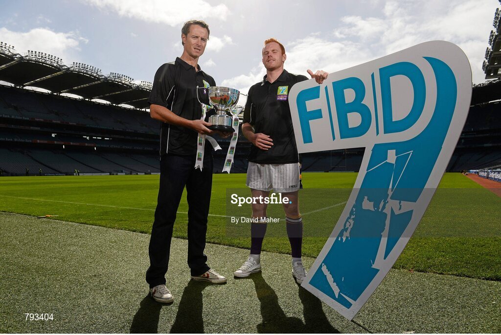 16 September 2013; The groups and teams for the FBD 7s, Ireland’s premier 7s football competition, were announced today in Croke Park. The FBD 7s is taking place in Kilmacud this Saturday, 21st September 2013 and 32 of Ireland’s top club teams will be taking part. At the launch of the 2013 FBD 7s hosted by Kilmacud Crokes are former Mayo player Kevin O'Neill, left, and former Dublin player and current Kilmacud Crokes player Mark Vaughan. FBD All-Ireland Football Sevens Launch, Croke Park, Dublin. Picture credit: David Maher / SPORTSFILE