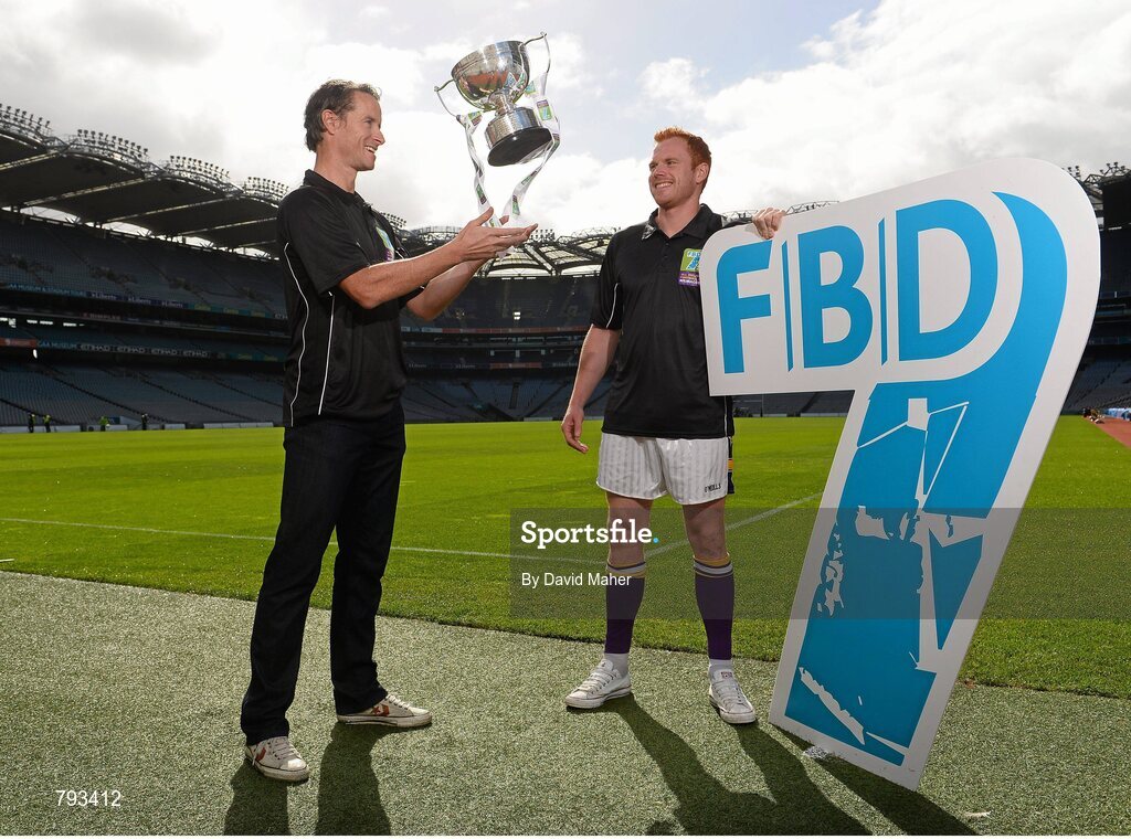16 September 2013; The groups and teams for the FBD 7s, Ireland’s premier 7s football competition, were announced today in Croke Park. The FBD 7s is taking place in Kilmacud this Saturday, 21st September 2013 and 32 of Ireland’s top club teams will be taking part. At the launch of the 2013 FBD 7s hosted by Kilmacud Crokes are former Mayo player Kevin O'Neill, left, and former Dublin player and current Kilmacud Crokes player Mark Vaughan. FBD All-Ireland Football Sevens Launch, Croke Park, Dublin. Picture credit: David Maher / SPORTSFILE