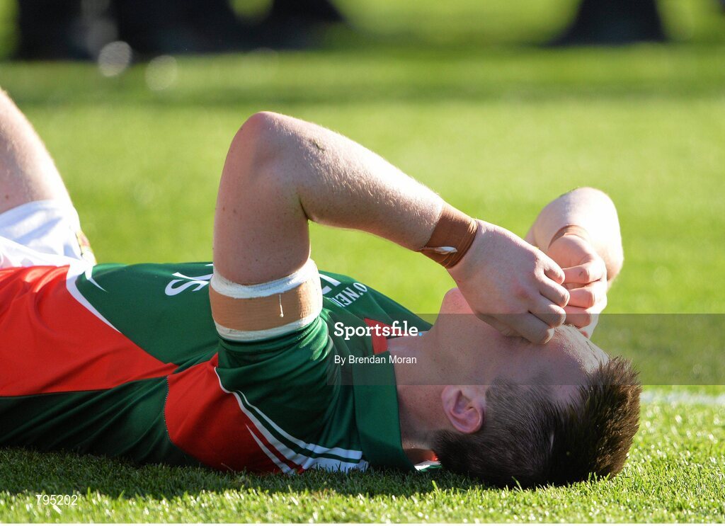22 September 2013; A dejected Cillian O'Connor, Mayo, following his side's defeat. GAA Football All-Ireland Senior Championship Final, Dublin v Mayo, Croke Park, Dublin. Picture credit: Brendan Moran / SPORTSFILE