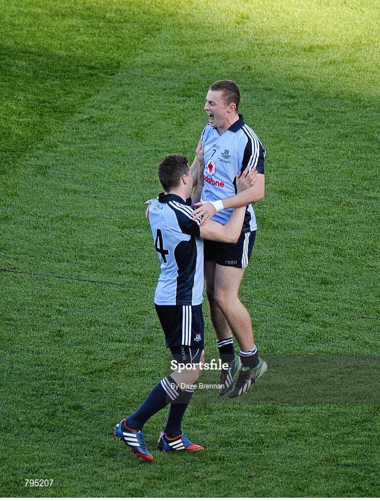 22 September 2013; Jack McCaffrey, right, and Paddy Andrews, Dublin, celebrate at the end of the game. GAA Football All-Ireland Senior Championship Final, Dublin v Mayo, Croke Park, Dublin. Picture credit: Dáire Brennan / SPORTSFILE