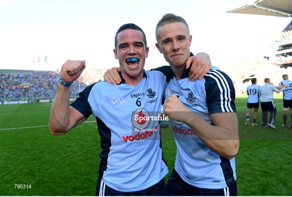 22 September 2013; Ger Brennan, left, and Paul Mannion, Dublin, celebrate after the game. GAA Football All-Ireland Senior Championship Final, Dublin v Mayo, Croke Park, Dublin. Photo by Sportsfile