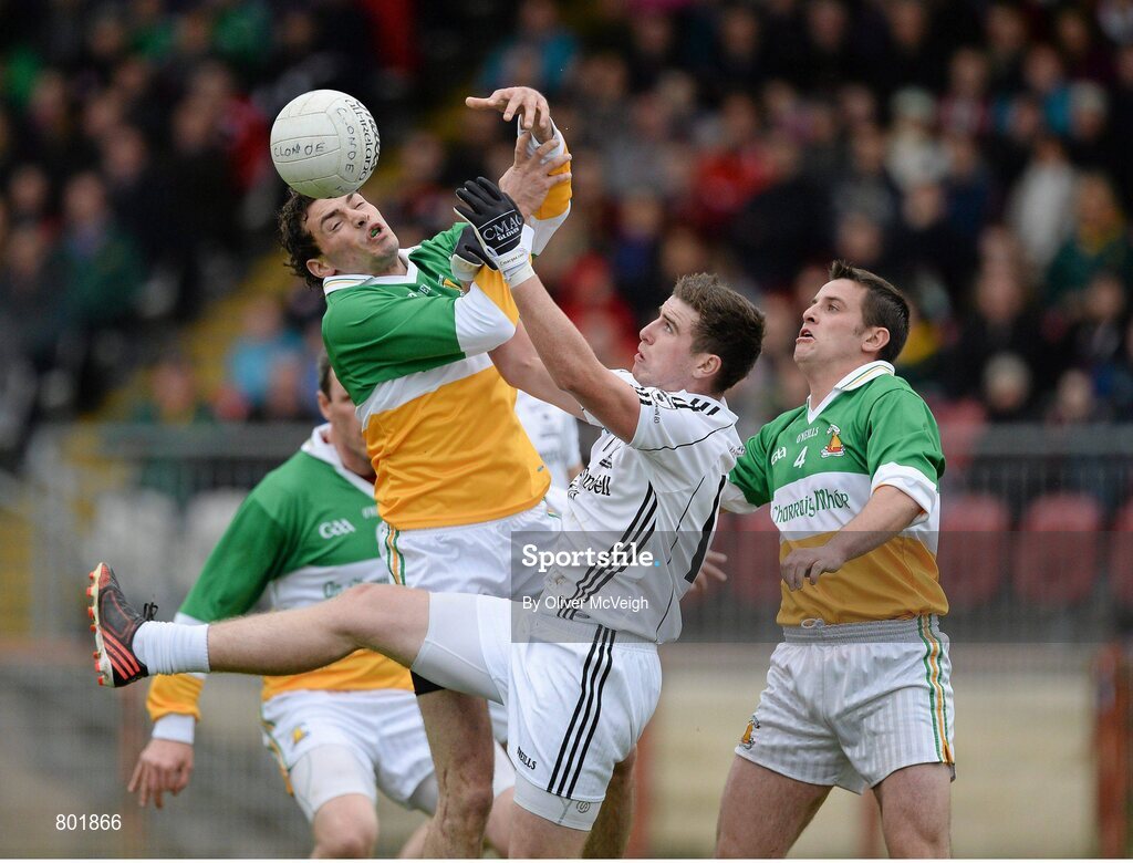 13 October 2013; Colm McGurk, Carrickmore St Colmcille's, in action against Connor McAliskey, Clonoe O`Rahilly's CLG. Tyrone County Senior Club Football Championship Final, Carrickmore St Colmcille's v Clonoe O`Rahilly's CLG, Healy Park, Omagh, Co. Tyrone. Picture credit: Oliver McVeigh / SPORTSFILE