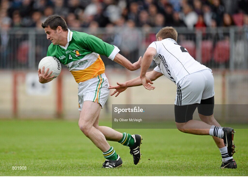 13 October 2013; Conor Mullan, Carrickmore St Colmcille's, in action against Dwayne Quinn, Clonoe O`Rahilly's CLG. Tyrone County Senior Club Football Championship Final, Carrickmore St Colmcille's v Clonoe O`Rahilly's CLG, Healy Park, Omagh, Co. Tyrone. Picture credit: Oliver McVeigh / SPORTSFILE
