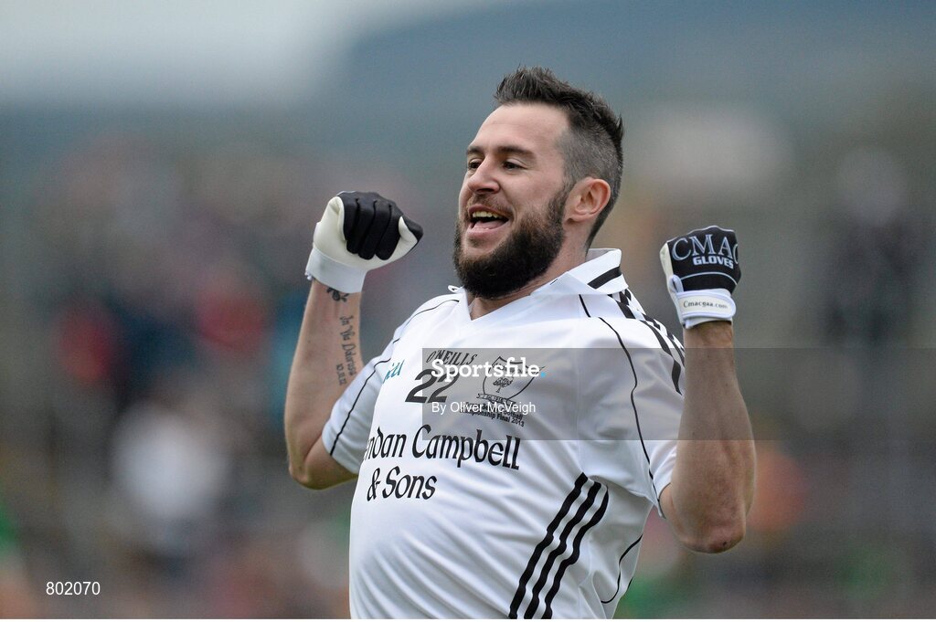 13 October 2013; Ryan O'Neill, Clonoe O`Rahilly's, celebrates at the final whistle. Tyrone County Senior Club Football Championship Final, Carrickmore St Colmcille's v Clonoe O`Rahilly's CLG, Healy Park, Omagh, Co. Tyrone. Picture credit: Oliver McVeigh / SPORTSFILE