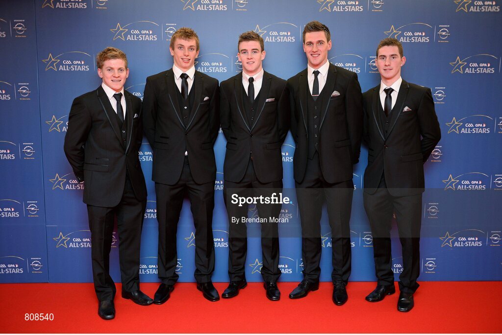 8 November 2013; Clare hurlers, from left, Pádraic Collins, David McInerney, Tony Kelly, Colin Ryan and Colm Galvin arrive ahead of the GAA GPA All-Star Awards 2013 Sponsored by Opel, at Croke Park, Dublin. Picture credit: Brendan Moran / SPORTSFILE