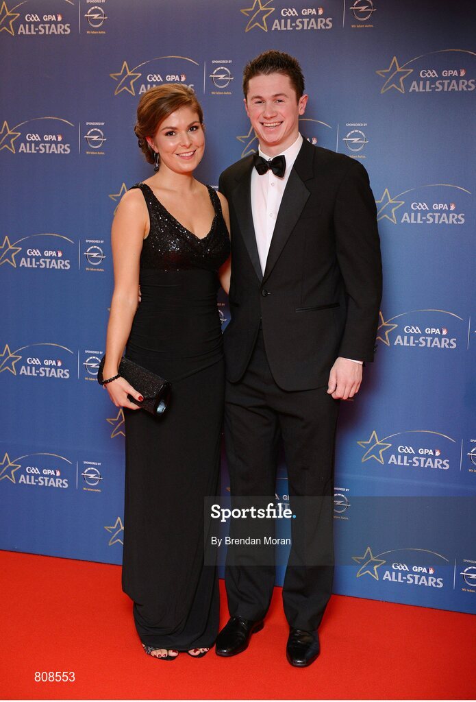 8 November 2013; Cork's Séamus Harnedy and Tessa O'Gorman arrive ahead of the GAA GPA All-Star Awards 2013 Sponsored by Opel, at Croke Park, Dublin. Picture credit: Brendan Moran / SPORTSFILE