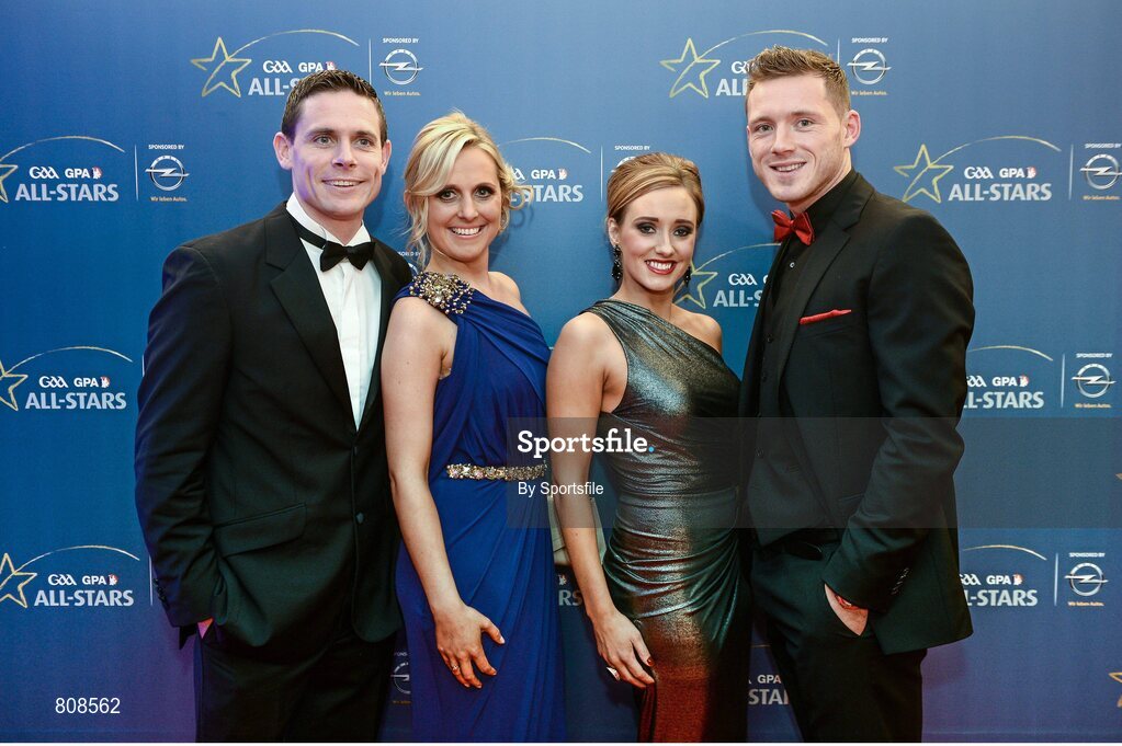 8 November 2013; Dublin footballers Stephen Cluxton, left, and Paul Flynn with Joanne O'Connor and Fiona Hudson, right, ahead of the GAA GPA All-Star Awards 2013 Sponsored by Opel, at Croke Park, Dublin. Photo by Sportsfile