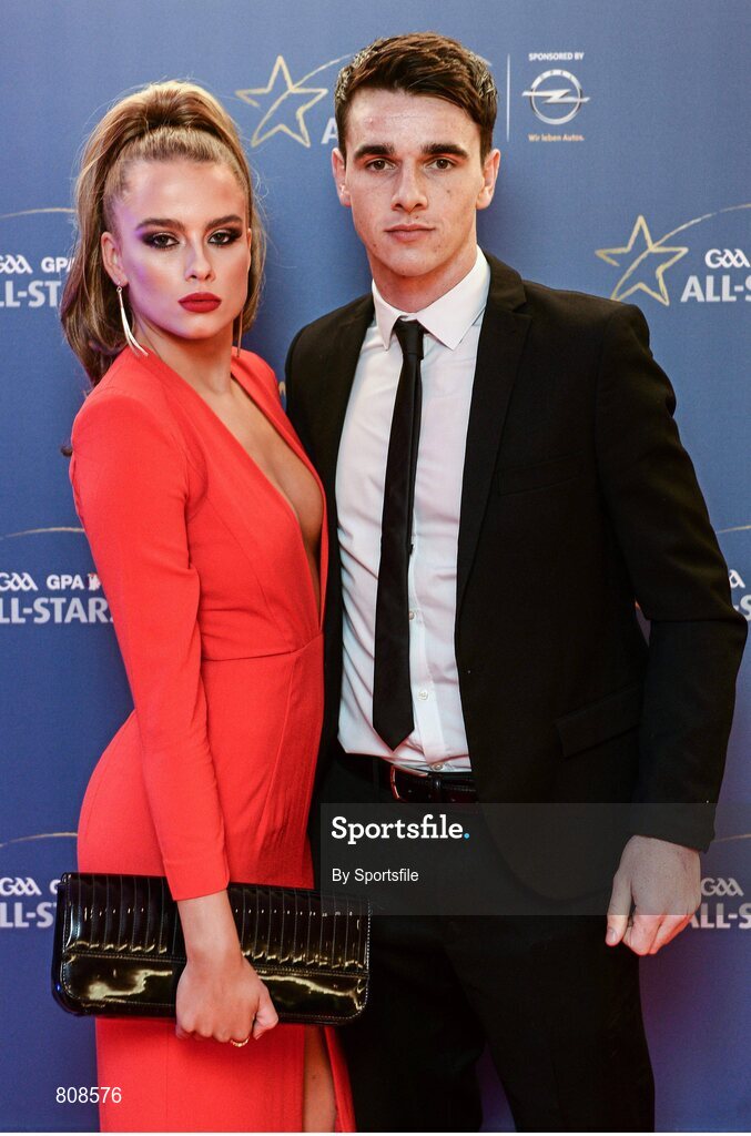8 November 2013; Dublin hurler Daniel Sutcliffe and Michelle Mooney arrive ahead of the GAA GPA All-Star Awards 2013 Sponsored by Opel, at Croke Park, Dublin. Photo by Sportsfile