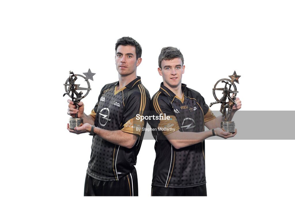 8 November 2013; Dublin footballer Michael Darragh Macauley, left, and Clare hurler Tony Kelly with their 2013 GAA GPA All-Star Player of the Year awards, at the GAA GPA All-Star Awards 2013, Sponsored by Opel. Croke Park, Dublin. Picture credit: Stephen McCarthy / SPORTSFILE